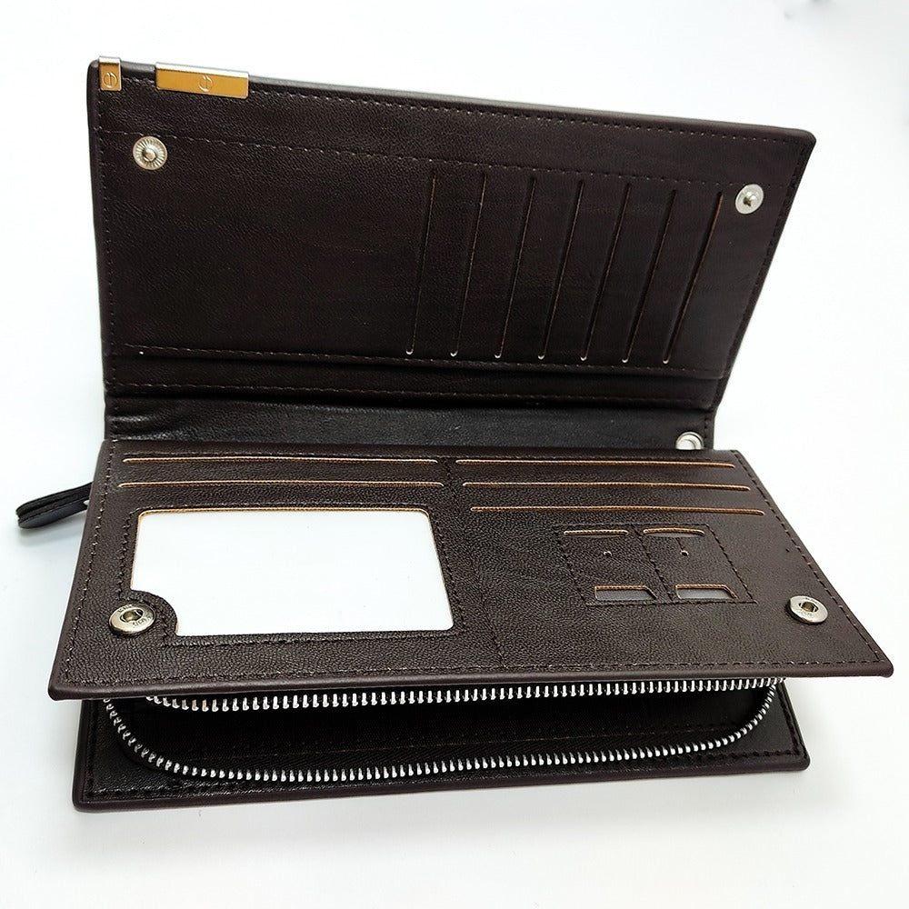 1 x Men Wallet Vintage PU Leather Long Purse Bifold Business Coin Change Pocket with Zipper Large Capacity